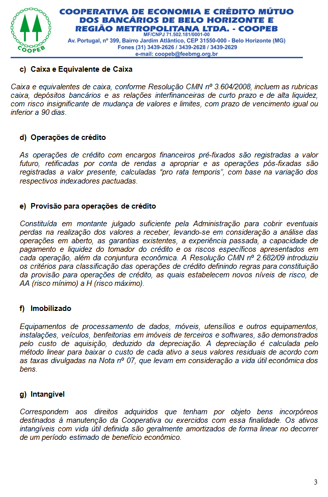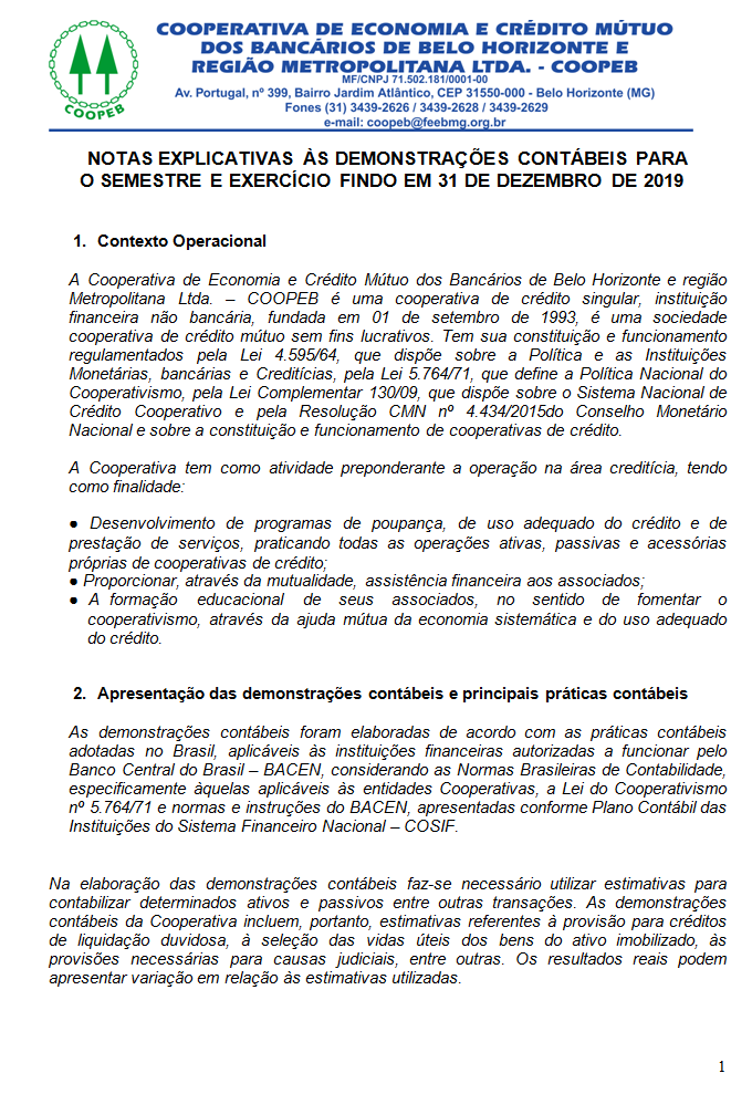 Notas explicativas às demonstraçoes contábeis