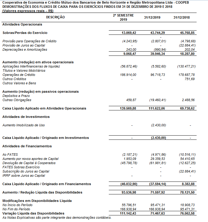 Demonstrações dos Fluxos de Caixa