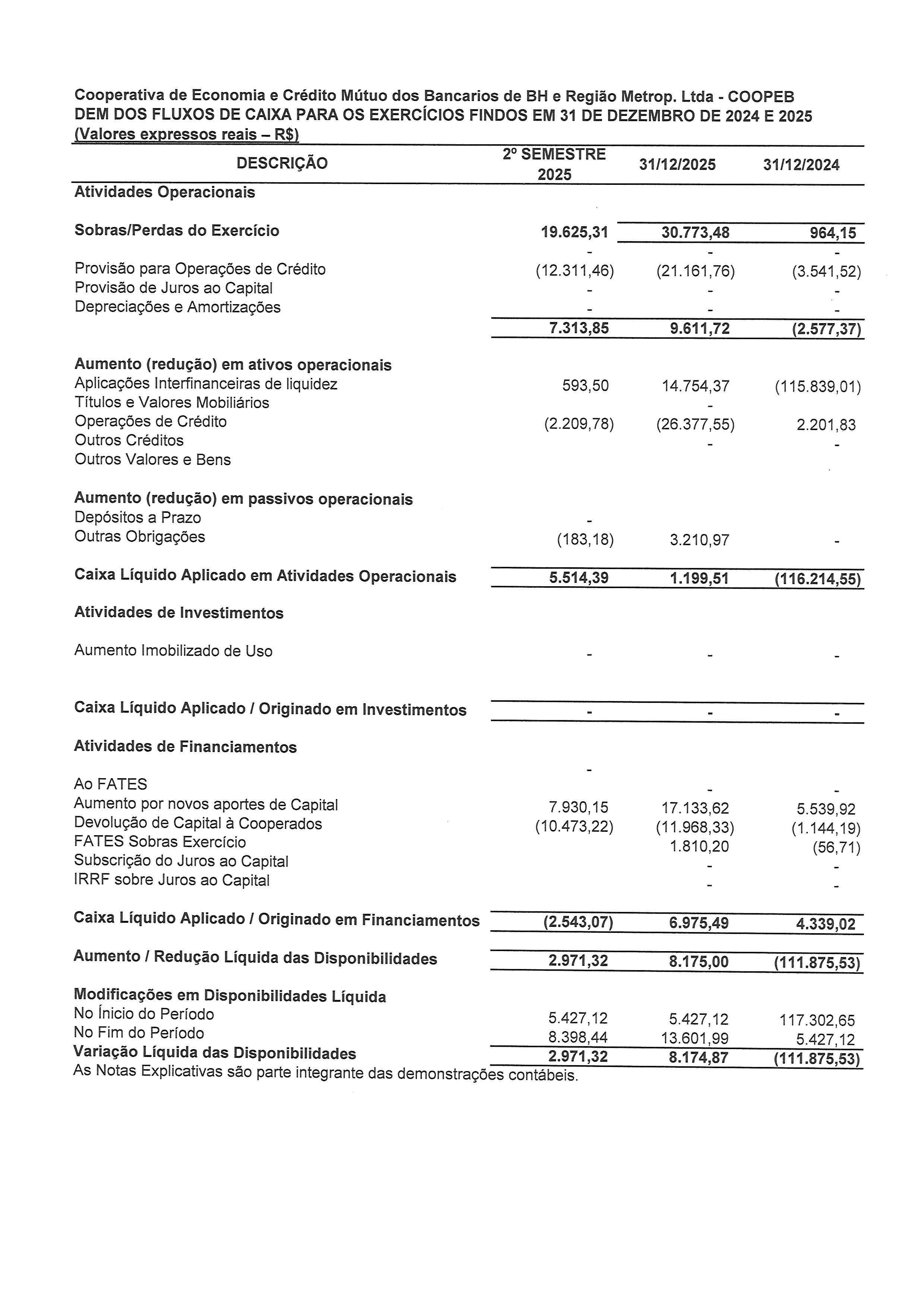 Demonstrações dos Fluxos de Caixa