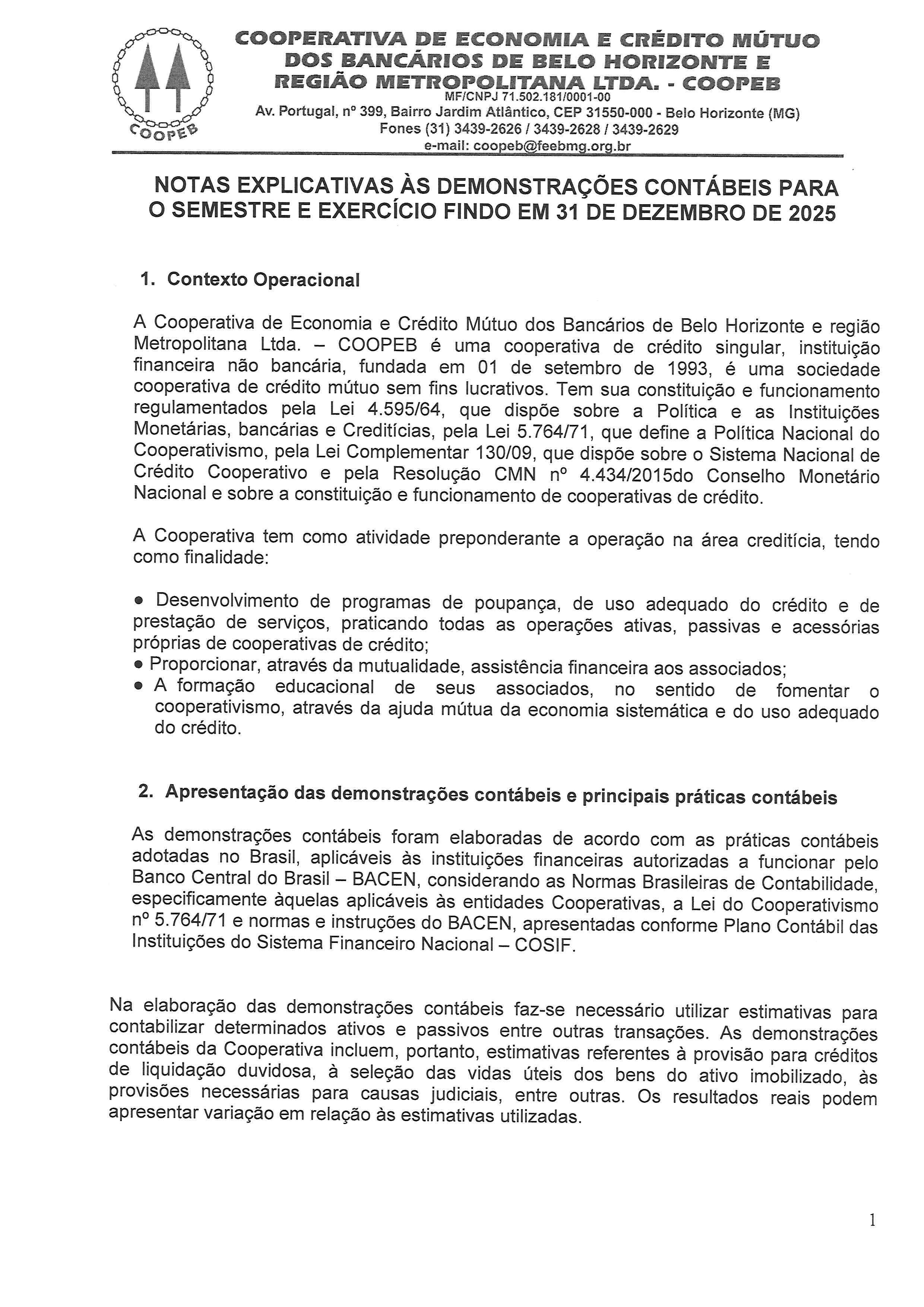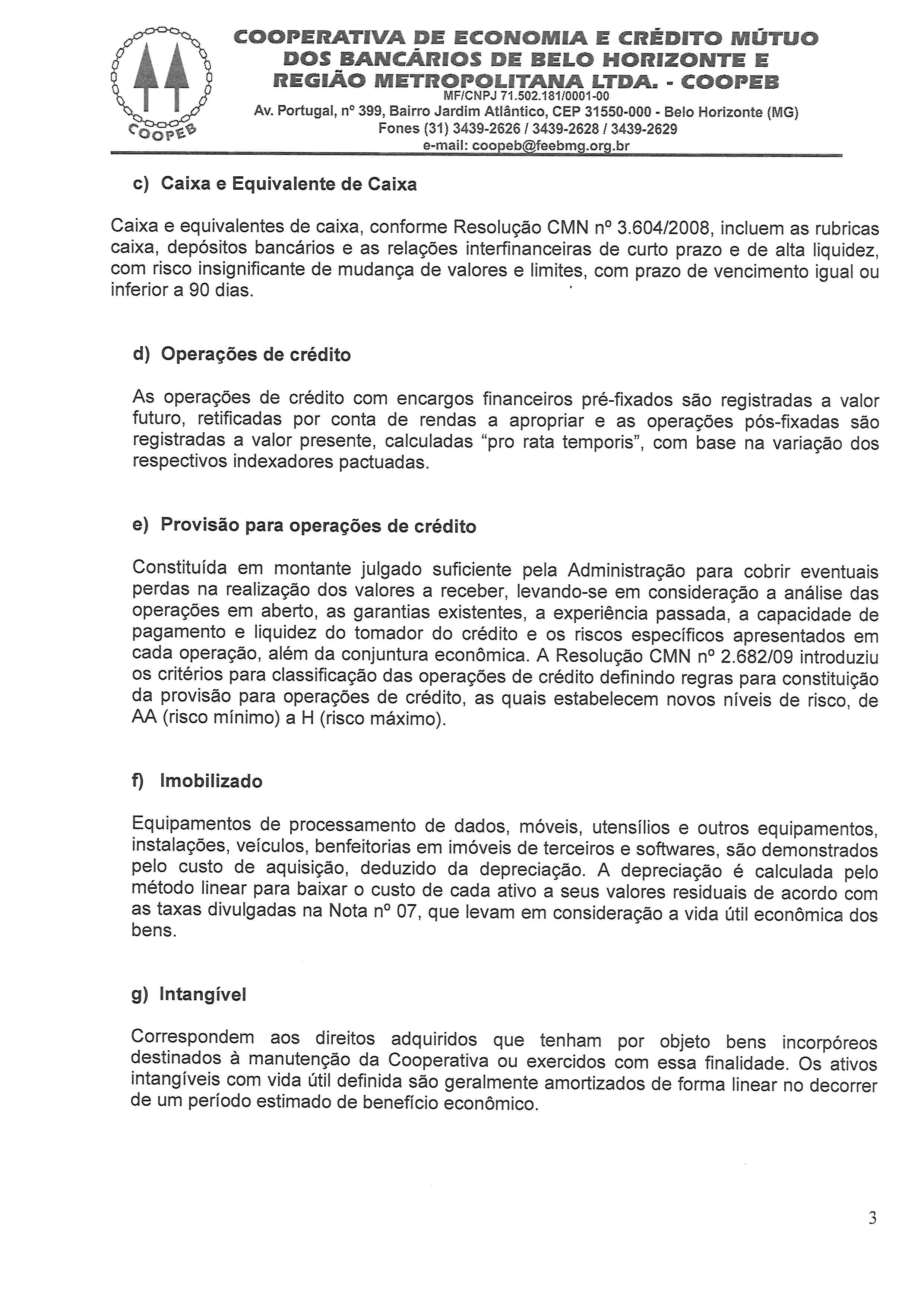 Notas explicativas às demonstraçoes contábeis